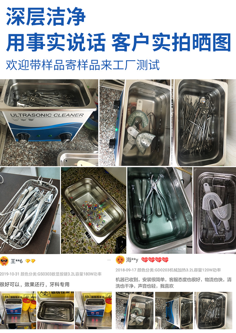 1.家用適用范圍:清潔高檔手表、品牌眼鏡、珠寶首飾等貴重物品和表鏈、水筆、光碟、刮須刀、梳子、牙刷、假牙、 茶具還有奶瓶、 奶嘴具等各類日用品,以及清洗水果、蔬菜、魚肉、碗碟筷等。